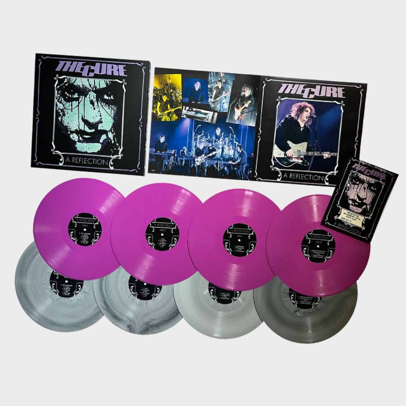 CUREA Reflection: Beacon Theatre, N.Y. 26/11/2011 - Numbered & ColoredPubblicato da Casino Records Entertainment, questo box set a tiratura limitata e numerata contiene 4 LP 180 grammi colorati (200 copie di color viola, 200 copie color marmo), un libretto di 4 pagine e un certificato numerato. Riproduce per la prima volta su vinile una eccellente registrazione "audience" completa del concerto che i Cure tennero il 26 novembre del 2011 al Beacon Theatre di New York durante il "Reflections Tour" nel quale la band inglese proponeva per intero il primo album "Three Imaginary Boys" come trio (Robert Smith voce e chitarra, Simon Gallup basso, Jason Cooper batteria), il secondo "Seventeen Seconds" come quartetto (con l'aggiunta di Roger O'Donnell alle tastiere) e il terzo "Faith" più i bis come quintetto (con Lol Tolhurst alle percussioni e alle tastiere) track list