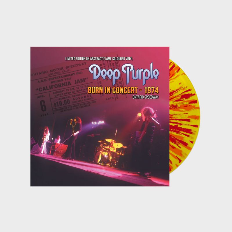 DEEP PURPLEBurn in Concert 1974 (Ontario Speedway) - Limited Splatter VinylEdito da Stylus Groove in sole 500 copie numerate a mano e stampato su vinile splatter colorato con motivo "abstract flame" diverso da una copia all'altra, questo LP non ufficiale riproduce una porzione del celeberrimo concerto di cui i Deep Purple (nella formazione comprendente David Coverdale alla voce solista, Ritchie Blackmore alla chitarra, Jon Lord all'organo e al sintetizzatore, Glenn Hughes al basso e voce e Ian Paice alla batteria) furono protagonisti il 6 aprile del 1974 all'Ontario Motor Speedway nell'ambito del California Jam Festival di cui erano co-headliner a fianco di Emerson, Lake & Palmer. Trasmessa all'epoca dal network televisivo americano ABC, l'esibizione è passata alla storia anche per le intemperanze di Blackmore (che dopo avere aggredito un cameraman presente sul palco diede fuoco e fece esplodere la sua chitarra), e i sette brani in scaletta comprendono pezzi dal disco allora in promozione, "Burn", e vecchi classici dei Deep Purple Mark II come "Smoke On The Water", "Lazy" e "Space Truckin'". La confezione include due QR code che permettono di scaricare il film documentario "Burn" (con la partecipazione di Glenn Hughes) e un eBook dedicato alla storia della band inglese track list