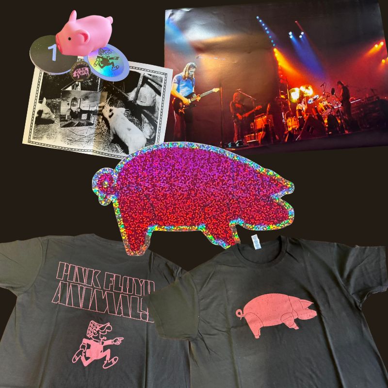 Stampato in sole 50 copie. Pre-ordine aperto per le pochissime a noi destinate. Il box con il maiale glitterato sulla copertina contiene: 3 LP da 180 g, una t-shirt, un poster, il programma del tour, una replica del biglietto del concerto, il maialino Algie di gomma, una cartolina, la spilletta di Animals, un adesivo Andy Capp e una moneta con il numero della copia. Come nelle altre date dell' "In The Flesh Tour", anche in occasione del concerto del 30 marzo del 1977 presso la New Bingley Hall di Stafford (Regno Unito), David Gilmour, Roger Waters, Richard Wright e Nick Mason furono affiancati sul palco dal chitarrista Snowy White (anche al basso) e dal sassofonista Dick Parry (anche alle tastiere) ed eseguirono per intero gli album "Animals" e "Wish You Were Here", cui si aggiunge in coda "Money" da "The Dark Side Of The Moon"